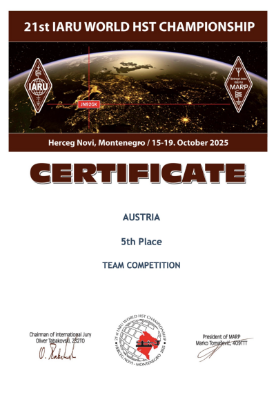 Vom 15. - 19.10.2025 fand in Herceg Novi, Montenegro, die 21. High Speed Telegraphy Weltmeisterschaft statt. Zur ÖVSV Delegation gehörten dieses Jahr Bernd OE3BMW, Michi OE8YXK, Luca OE8DDX, Robert OE3RLV, Thomas OE3TBU, Barbara OE3SQU, Stephan OE3SPR, Martin OE3VBU und Gudrun OE1OMA.